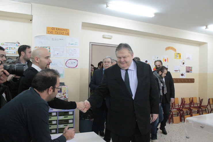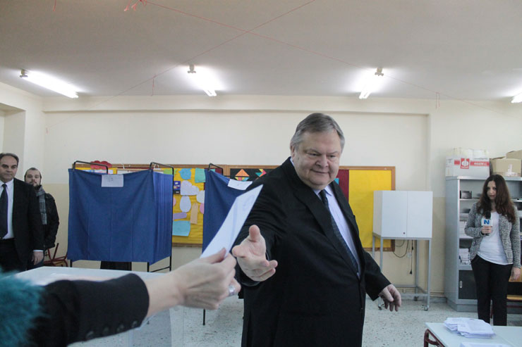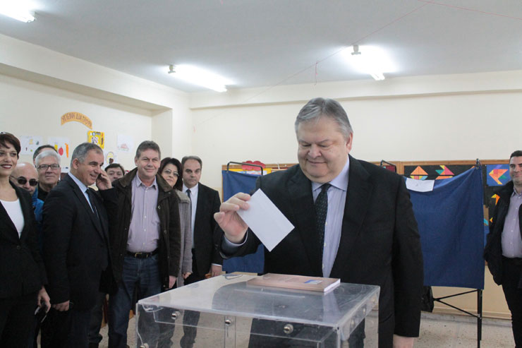Στο όγδοο Δημοτικό Σχολείο Αμπελοκήπων στη Θεσσαλονίκη προσήλθε στις 10.10 ο πρόεδρος του ΠΑΣΟΚ Ευάγγελος Βενιζέλος, συνοδεία συνεργατών του, για να ασκήσει το εκλογικό του δικαίωμα.
