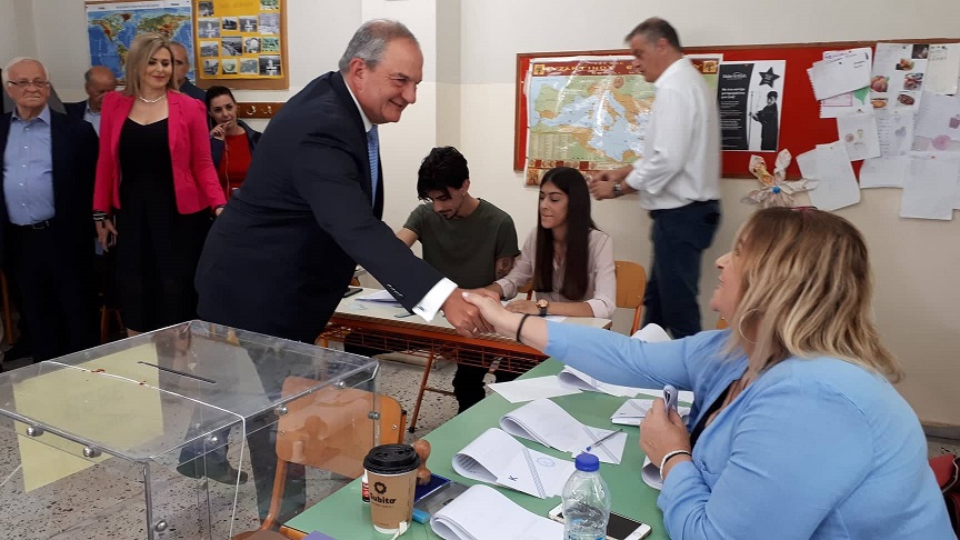 Το εκλογικό του δικαίωμα άσκησε πριν από λίγο ο πρώην πρωθυπουργός, Κώστας Καραμανλής, στο 3ο Δημοτικό Σχολείο Θεσσαλονίκης, στην οδό Δελφών.