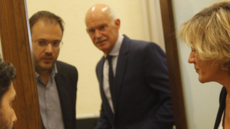 «Στο πλαίσιο των συζητήσεων που έχουν ξεκινήσει από την άνοιξη με πρωτοβουλία της Δημοκρατικής Συμπαράταξης συναντήθηκα σήμερα με τον πρώην πρωθυπουργό και πρόεδρο του Κινήματος Δημοκρατών Σοσιαλιστών, Γιώργο Παπανδρέου. Συζητήσαμε τις ευρύτερες πολιτικές εξελίξεις και την αναγκαιότητα ενός ισχυρού αυτόνομου πόλου της κεντροαριστεράς σαφώς οριοθετημένου τόσο από τις αδιέξοδες πολιτικές και το λαϊκισμό του ΣΥΡΙΖΑ όσο και από τις συντηρητικές πολιτικές της ΝΔ.