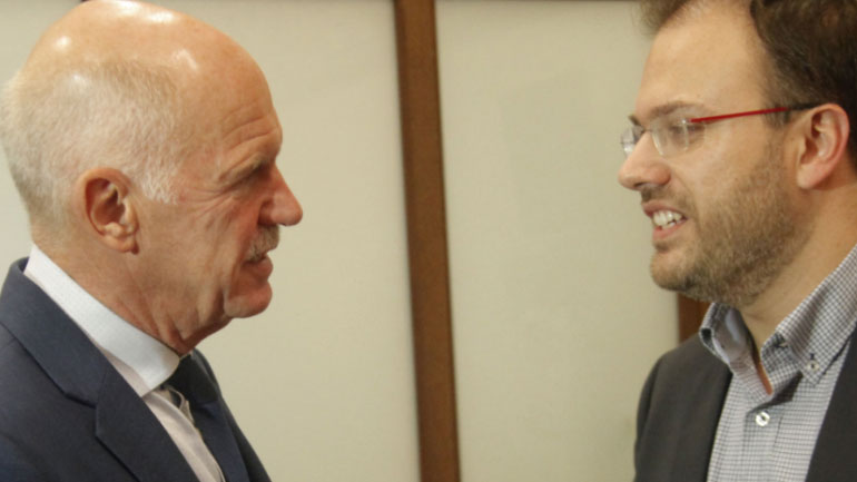 O πρόεδρος της ΔΗΜΑΡ, Θανάσης Θεοχαρόπουλος, συναντήθηκε με τον πρόεδρο του Κινήματος Δημοκρατών Σοσιαλιστών και πρώην πρωθυπουργό, Γιώργο Παπανδρέου, σήμερα στη Βουλή.