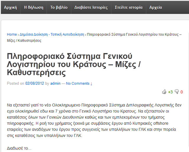 Πληροφοριακό Σύστημα Γενικού Λογιστηρίου του Κράτους – Μίζες / Καθυστερήσεις…