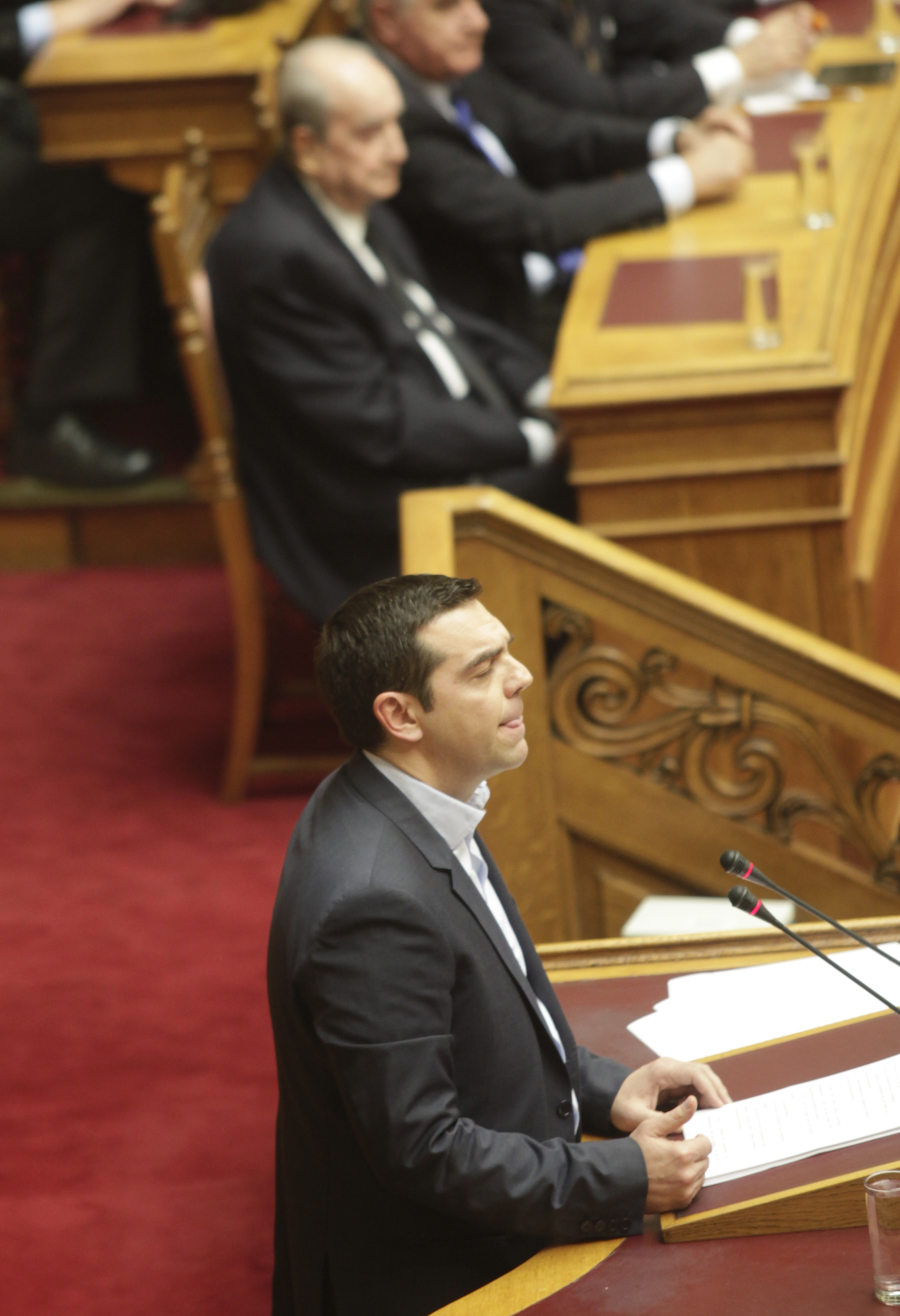 «Ξεκαθαρίζουμε προς όλες τις κατευθύνσεις: Δεν διαπραγματευόμαστε την εθνική μας κυριαρχία. Το Μνημόνιο καταργήθηκε από τον λαό. Η νέα κυβέρνηση δεν δικαιούται να ζητήσει παράταση του Μνημόνιου. Ζητάμε πρόγραμμα-γέφυρα μέχρι τον Ιούνιο. Επιδιώκουμε μια νέα συμφωνία με τους εταίρους. Παρά τις δυσκολίες, υπάρχουν προτάσεις για να βρεθεί λύση με τους διαπραγματευτές των δανειστών. Το νέο σχέδιο θα σέβεται τους κανόνες λειτουργίας της ευρωζώνης αλλά δεν θα μας καταδικάσει σε ύφεση.