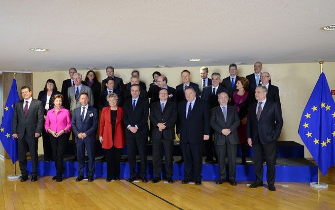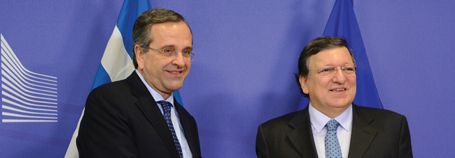 O πρωθυπουργός Αντώνης Σαμαράς κατά την κοινή συνέντευξη Τύπου που παραχώρησε στις Βρυξέλλες με τον πρόεδρο της Κομισιόν Ζοζέ Μανουέλ Μπαρόζο, παρουσίασε τους τέσσερις άξονες, ανάπτυξη, συνοχή, τραπεζική ενοποίηση και μεταναστευτική πολιτική, πάνω στους οποίους θα κινηθεί η ελληνική προεδρία. Κατά την ομιλία του αναφέρθηκε και στις προσπάθειες της Ελλάδας για έξοδο από την κρίση. Ως χρονιά – ορόσημο τέθηκε το 2014.