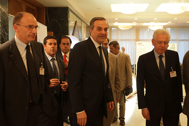 Ο πρωθυπουργός Αντώνης Σαμαράς, εξαπέλυσε συνολική επίθεση στον ΣΥΡΙΖΑ με αιχμή τη στάση του στο θέμα της ΔΕΗ, μιλώντας στο συνέδριο του Economist καταλογίζοντάς του ότι «πηγαίνει χέρι- χέρι με τους Χρυσαυγίτες».