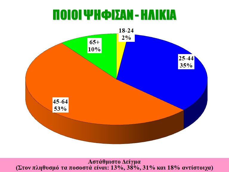 Σύμφωνα με τα στοιχεία που οι ίδιοι οι συμμετέχοντες κατέθεσαν, το 53% των ψηφισάντων ανήκουν στην ηλικιακή κατηγορία 45-64 ετών και το 35% στην κατηγορία των 25-44 ετών. Το 10% των συμμετεχόντων είναι 65 ετών, ενώ το 2% ανήκει στην κατηγορία των 18-24 ετών.