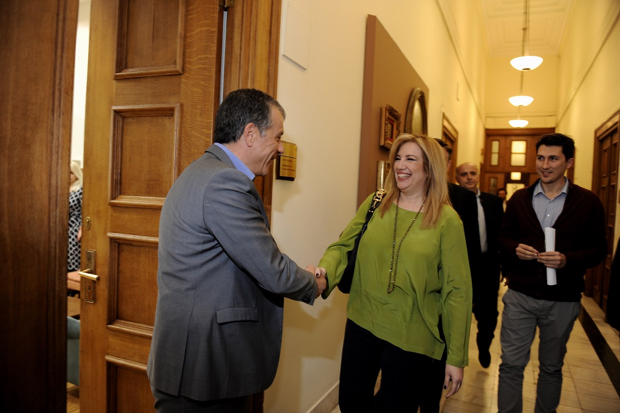 Ως το πρώτο βήμα στη προσπάθεια δημιουργίας ρεύματος που θα σταθεί ενάντια σε Ν.Δ. και ΣΥΡΙΖΑ χαρακτήρισε η πρόεδρος του ΠΑΣΟΚ Φώφη Γεννηματά τη συνάντηση με τον επικεφαλής του Ποταμιού Σταύρο Θεοδωράκη, ο οποίος απ’ την πλευρά του δήλωσε ότι θα δημιουργηθεί επιτροπή θέσεων που σε δύο μήνες θα υποβάλλει τα συμπεράσματά της.