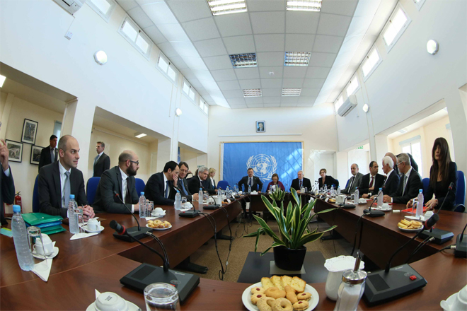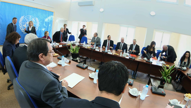 Η συνάντηση πραγματοποιείται στο χώρο του υπό την προστασία των Ηνωμένων Εθνών αεροδρομίου Λευκωσίας.