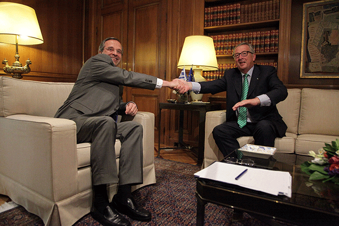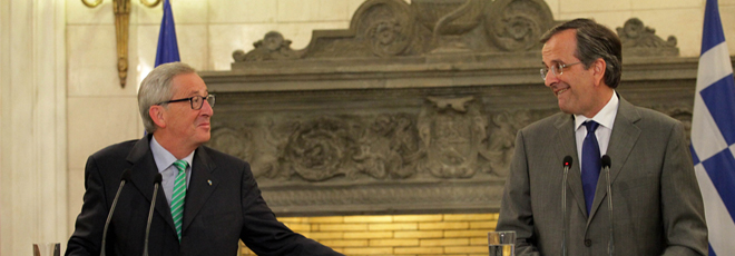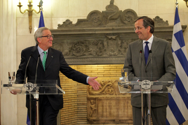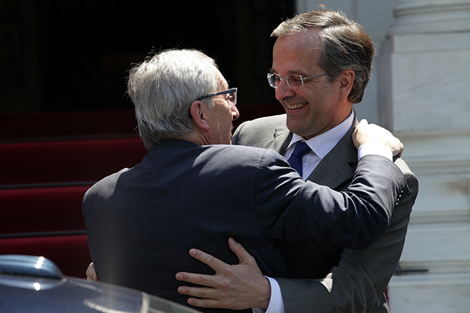 Ο Αντώνης Σαμαράς εξέφρασε την ικανοποίησή του για την επίσκεψη του πρώην επικεφαλής του Eurogroup στην Ελλάδα. «Τόλμη, διορατικότητα και ενωτική στάση» είναι τα τρία βασικά χαρακτηριστικά του Ζαν Κλοντ Γιούνκερ, σύμφωνα με τον πρωθυπουργό, ο οποίος μάλιστα υπενθύμισε πως ο νέος πρόεδρος της Κομισιόν στήριξε την παραμονή της Ελλάδας στο ευρώ, «όταν πύκνωναν οι φωνές για την απομάκρυνση της χώρας».
