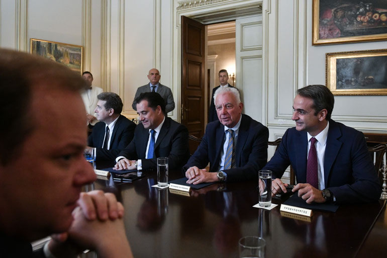 Λίγο μετά τις 18.00 την Παρασκευή ολοκληρώθηκε το πρώτο υπουργικό συμβούλιο που συνεδρίασε στο Μέγαρο Μαξίμου υπό τον πρωθυπουργό Κυριάκο Μητσοτάκη.