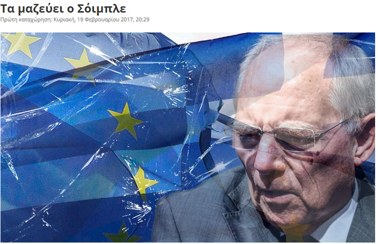 Την ίδια ώρα ο Γερμανός υπουργός Οικονομικών Βόλφγκανγκ Σόιμπλε μιλώντας στο γερμανικό δίκτυο ΑRD αρνήθηκε ότι απείλησε τη χώρα μας με Grexit, σημειώνοντας ότι «όσο η Ελλάδα ακολουθεί τον δρόμο των μεταρρυθμίσεων δεν υπάρχει κανένα πρόβλημα».
