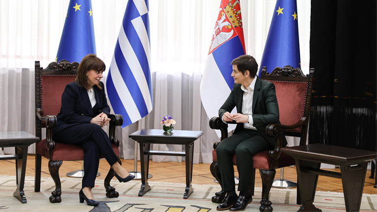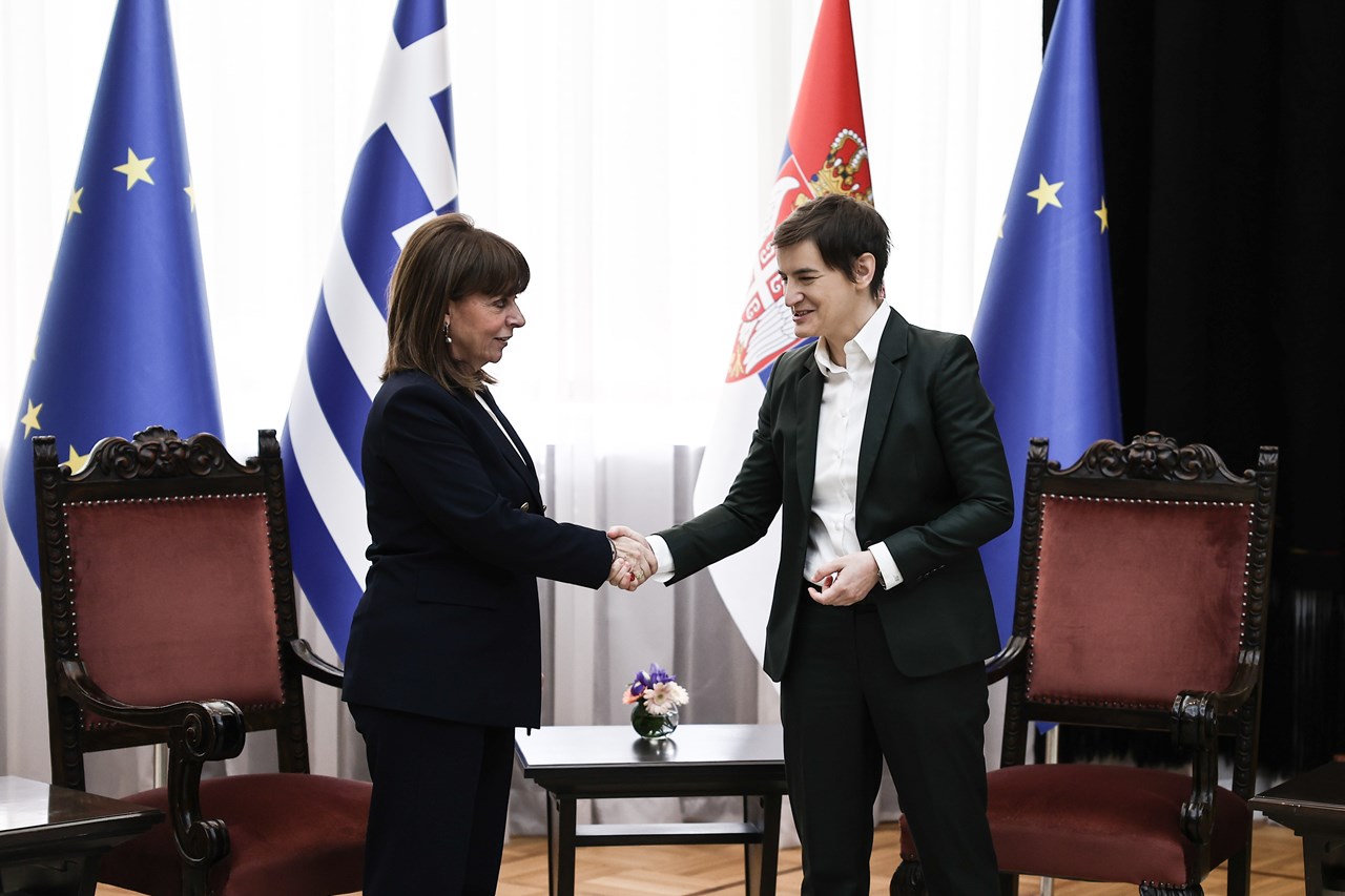 Η Πρόεδρος της Δημοκρατίας Κατερίνα Σακελλαροπούλου συναντήθηκε στο Βελιγράδι με τον ομόλογό της τής Σερβίας Αλεξάνταρ Βούτσιτς. Η επίσημη τελετή υποδοχής πραγματοποιήθηκε μπροστά από το κυβερνητικό κτίριο «Παλάτι της Σερβίας» με την ανάκρουση των εθνικών ύμνων των δύο χωρών και την απόδοση τιμών από την Προεδρική Φρουρά.