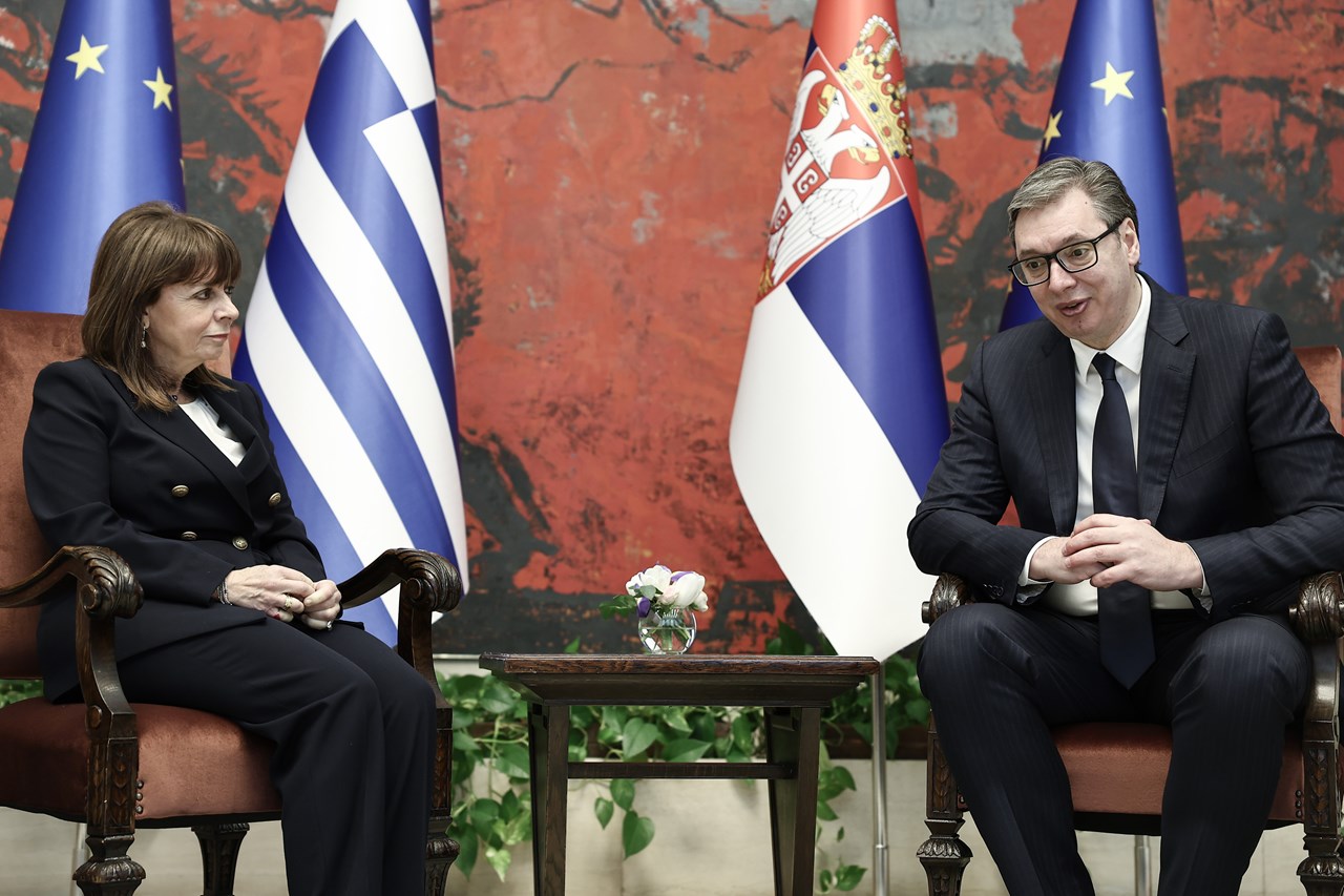 Ο Αλεξάνταρ Βούτσιτς ευχαρίστησε την Πρόεδρο της Ελληνικής Δημοκρατίας για την υποστήριξη που παρέχει η Ελλάδα στην ευρωπαϊκή ολοκλήρωση της Σερβίας και για την συνέπεια που επιδεικνύει στο ζήτημα του Κοσόβου. Επισήμανε επίσης ότι «η Σερβία υποστηρίζει την εδαφική ακεραιότητα και κυριαρχία της Ελληνικής Δημοκρατίας σε ξηρά, θάλασσα και αέρα» σημειώνοντας ότι η στάση αυτή βασίζεται στις αρχές της Χάρτας του ΟΗΕ και δεν πρόκειται να αλλάξει.
