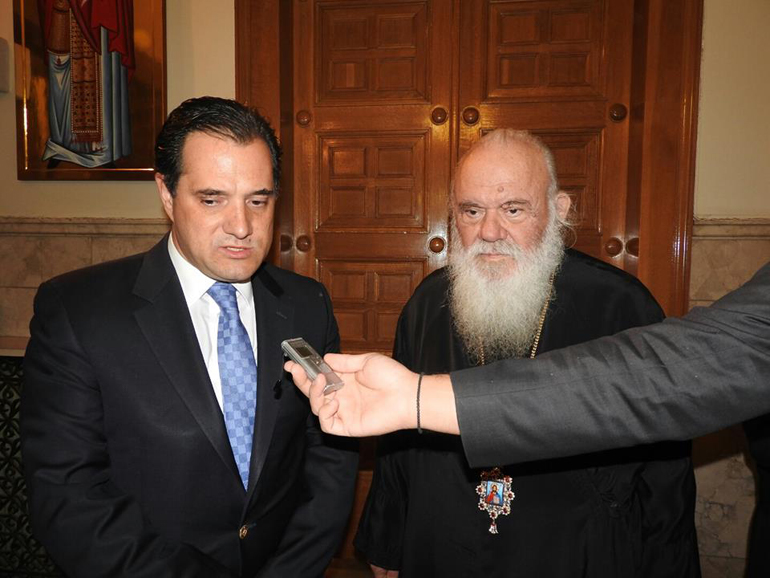 Mακαριώτατος: «Και εγώ θέλω να ομολογήσω την χαρά μου που είχαμε την επίσκεψη εδώ του φίλου μας του κυρίου Άδωνι. Ακούσαμε, συζητήσαμε και εγώ θα έλεγα ότι μέσα σε μία δημοκρατική χώρα ευνομούμενη ο καθένας που αισθάνεται δυνάμεις εσωτερικές μπορεί να διεκδικήσει ό,τι νομίζει ότι μπορεί να το επιτελέσει, να το εκτελέσει καλύτερα. Έχει ένα αγώνα μπροστά του, όπως και άλλοι αγωνίζονται για τον ίδιο λόγο. Να ευχηθώ να έχουν δύναμη μέσα στην ειρήνη, την αγάπη, τη συνεργασία ο καθένας να κάνει τον αγώνα του».