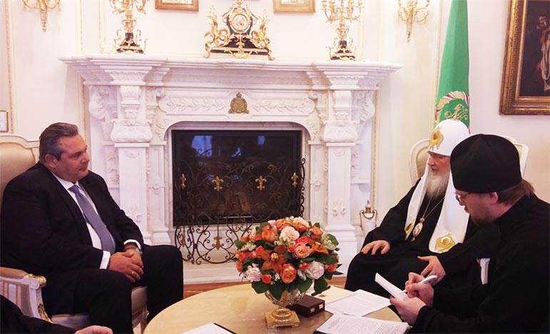 Ο Υπουργός Εθνικής Άμυνας Πάνος Καμμένος στο πλαίσιο της επίσκεψής του στη Ρωσία είχε συνάντηση μίας ώρας με τον Πατριάρχη Μόσχας και Πασών των Ρωσιών κ.κ. Κύριλλο.