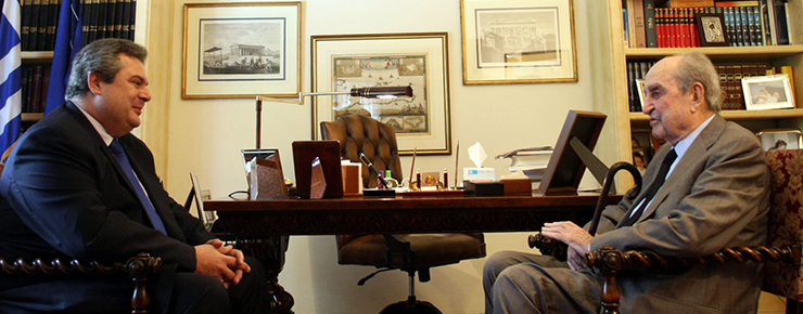 Σύμφωνα με πληροφορίες, ο Πάνος Καμμένος προσέφερε στον επίτιμο πρόεδρο της ΝΔ ένα ταψί με δίπλες εν όψει Χριστουγέννων.