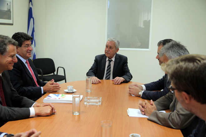 Από την πλευρά του ο κ. Κουβέλης τόνισε ότι οι καθυστερήσεις στην εφαρμογή του αναπτυξιακού σχεδίου είναι απαράδεκτες και οι συνέπειες μεγαλώνουν καθώς η χώρα είναι σε οικονομική κρίση. «Ο πλούτος της ανάπτυξης που μπορεί να προκύψει, πρέπει να κατανεμηθεί δίκαια σ’ ολόκληρη την κοινωνία», είπε ο πρόεδρος της ΔΗΜΑΡ και πρόσθεσε ότι ζήτησε από τη ηγεσία των βιομηχάνων την προστασία των εργασιακών δικαιωμάτων.