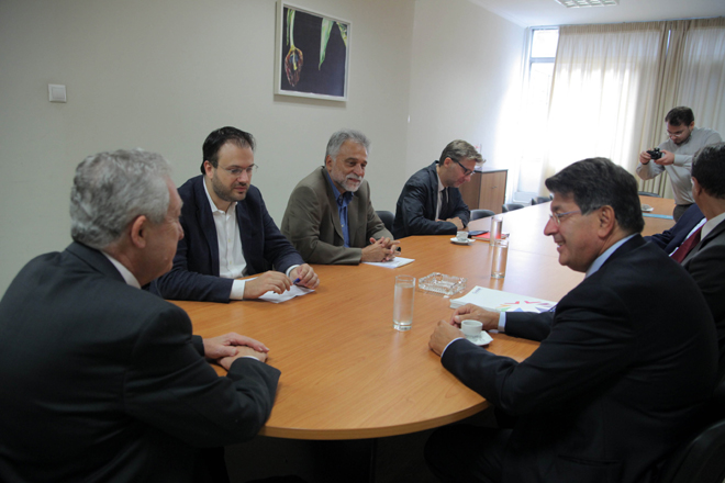 Ο πρόεδρος της ΔΗΜΑΡ, Φώτης Κουβέλης, συναντήθηκε το μεσημέρι με αντιπροσωπεία της διοίκησης του ΣΕΒ, υπό τον πρόεδρο Θεόδωρο Φέσσα. Στη συνάντηση συμμετείχαν επίσης ο γραμματέας του κόμματος, Θανάσης Θεοχαρόπουλος, και ο υπεύθυνος του τομέα Οικονομίας, Δημήτρης Χατζησωκράτης.