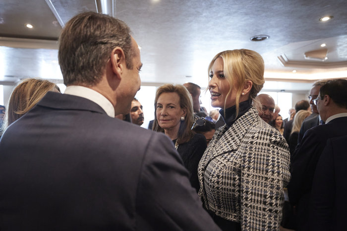 Σύντομη συνομιλία με την κόρη του Αμερικανού προέδρου, Ιβάνκα Τραμπ, είχε ο Κυριάκος Μητσοτάκης στο περιθώριο του Παγκόσμιου Οικονομικού Φόρουμ του Νταβός.