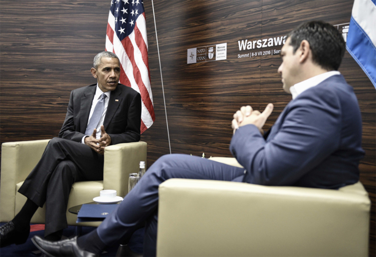 Οι διμερείς ελληνοαμερικανικές σχέσεις, το θέμα του χρέους, το Κυπριακό, αλλά και η κατάσταση στην Ευρώπη συζητήθηκαν κατά τη συνάντηση του πρωθυπουργού Αλέξη Τσίπρα με τον πρόεδρο των Ηνωμένων Πολιτειών Μπαράκ Ομπάμα, στη Βαρσοβία, στο περιθώριο της Συνόδου του ΝΑΤΟ.