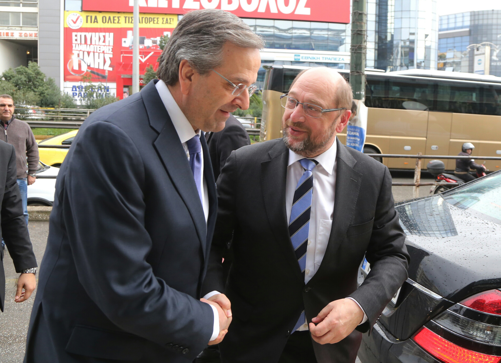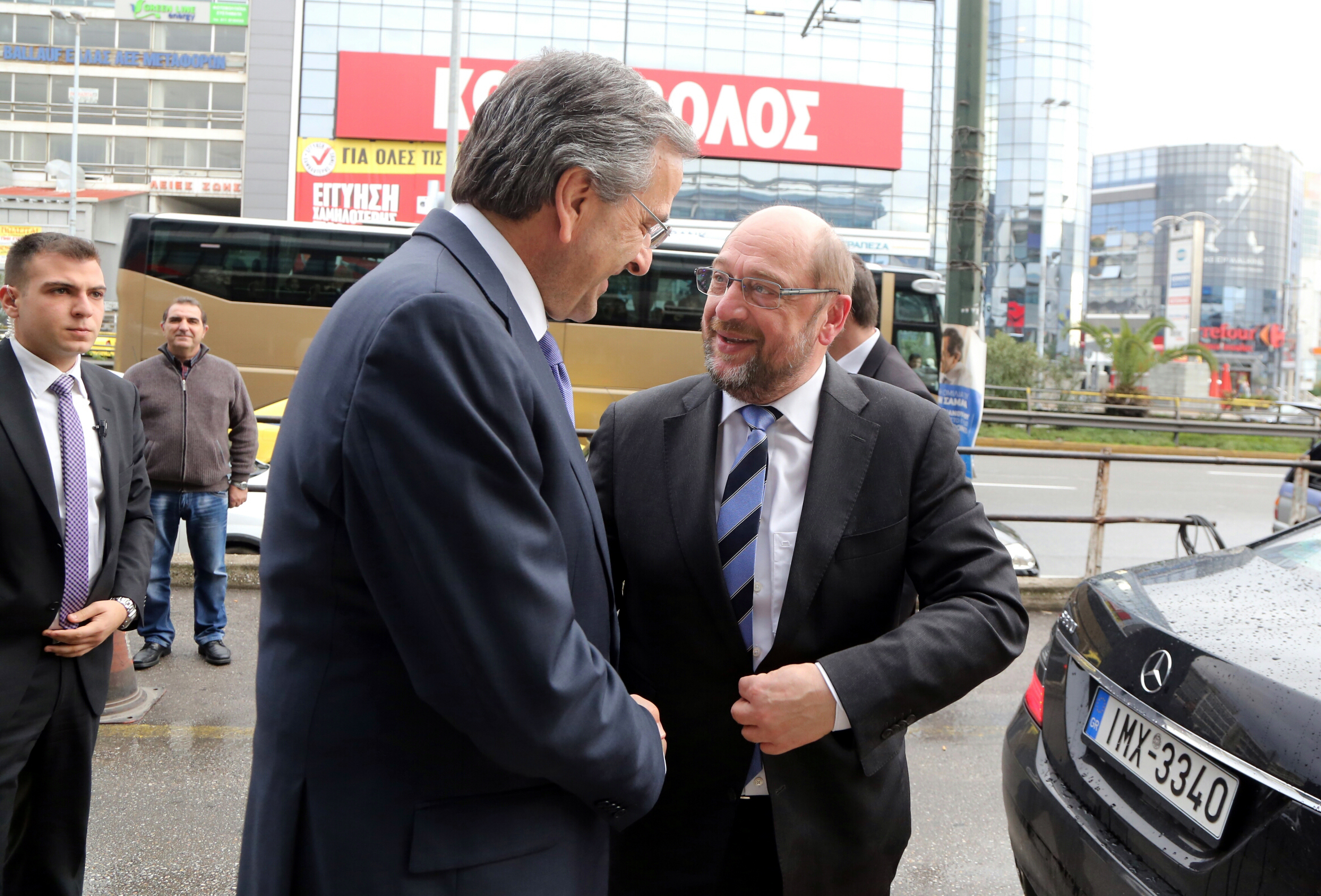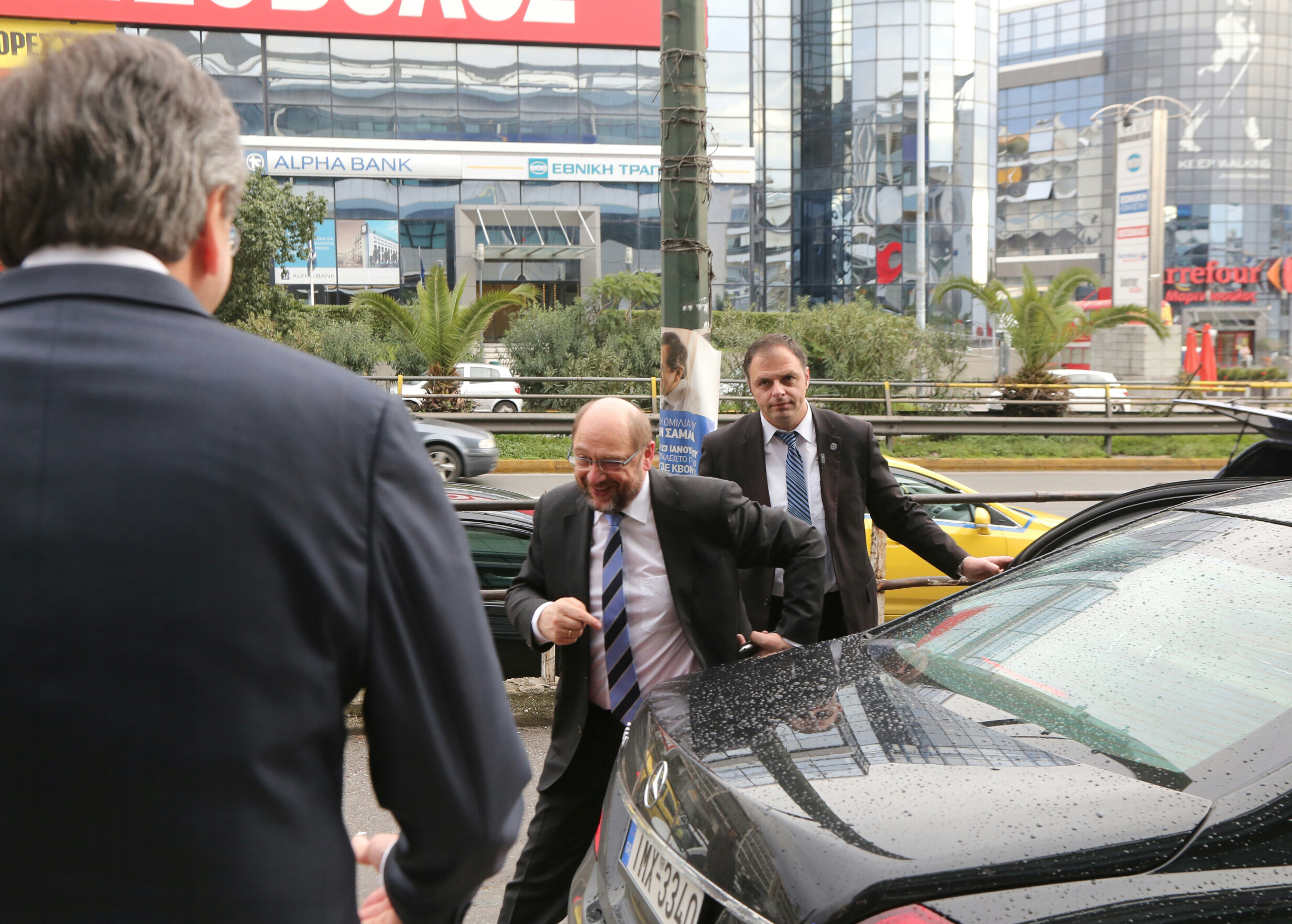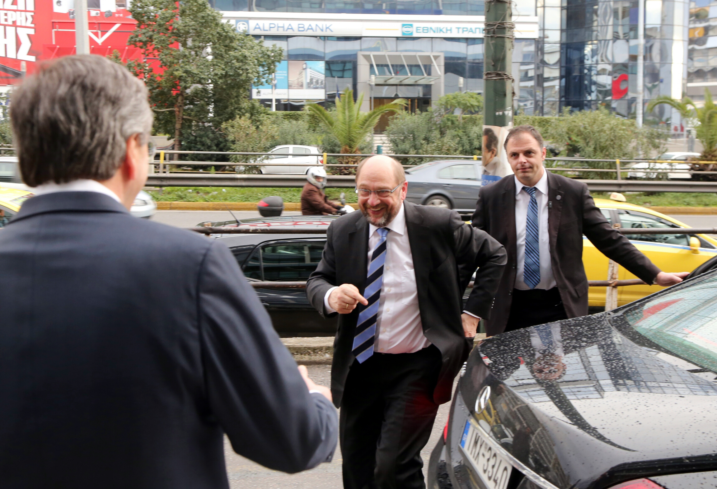Ο κ. Σουλτς κατέφθασε στα γραφεία της Νέας Δημοκρατίας, αμέσως μετά την ολοκλήρωση της εκτενούς συζήτησής του με τον πρωθυπουργό, Αλέξη Τσίπρα.