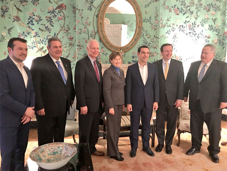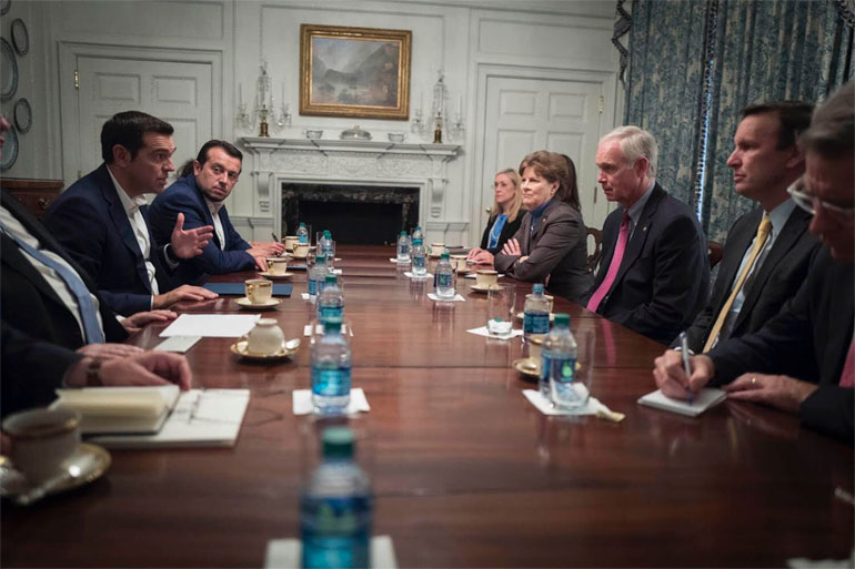 Συνάντηση με μέλη της επιτροπής Εξωτερικών Υποθέσεων της αμερικανικής Γερουσίας, πραγματοποίησε νωρίτερα ο Έλληνας πρωθυπουργός, Αλέξης Τσίπρας, στο Blair House όπου διαμένει, κατά την επίσκεψή του στην Ουάσιγκτον, μαζί με την ελληνική κυβερνητική αποστολή.