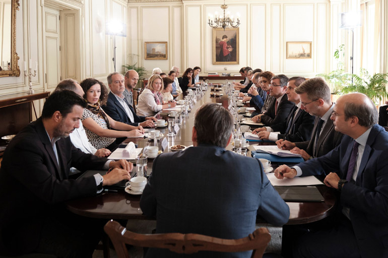 «Καλώς ήρθατε. Με πολύ μεγάλη χαρά σας υποδέχομαι στο Μέγαρο Μαξίμου, στο πλαίσιο των τακτικών συναντήσεων που κάνει πια το Υπουργείο Περιβάλλοντος με όλες τις περιβαλλοντικές οργανώσεις.