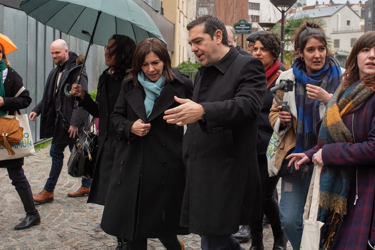 «Συνάντηση με την δήμαρχο του Παρισιού Anne Hidalgo. Στήριξη στον αγώνα της – τον κοινό αγώνα των προοδευτικών δυνάμεων της Γαλλίας – ενόψει των εκλογών της 15ης Μαρτίου» ανέφερε για την πρώτη του συνάντηση ο κ. Τσίπρας. Σύμφωνα με την ενημέρωση της Κουμουνδούρου, με την δήμαρχο ο Αλέξης Τσίπρας επισκέφθηκε «ένα σπουδαίο και δημοφιλές βιβλιοπωλείο του 20ου διαμερίσματος, το ‘Le Merle Moqueur’, που φιλοξενεί συγγραφείς από όλο τον κόσμο. Ο Αλέξης Τσίπρας ζήτησε να του πουν για Έλληνες συγγραφείς που φιλοξενούν και συνομίλησαν για τον Νίκο Καζαντζάκη, με τον Αλέξη Τσίπρα να αναφέρεται στη διάσημη φράση του συγγραφέα ‘δεν ελπίζω τίποτα, δεν φοβούμαι τίποτα, είμαι λέφτερος’. Στη συνέχεια έγινε αναφορά σε βιβλία του Βασίλη Βασιλικού και της Ρέας Γαλανάκη, ενώ στάθηκαν σε ένα βιβλίο του Νίκου Καββαδία, του ποιητή της θάλασσας όπως τόνισαν, με τον Αλέξη Τσίπρα να θυμίζει ότι πρόσφατα χάσαμε τον Θάνο Μικρούτσικο, έναν σπουδαίο μουσικό που έκανε γνωστή την ποίησή του σε ολόκληρο τον κόσμο. Τέλος, ο κ. Τσίπρας ρώτησε για τα βιβλία του Βασίλη Αλεξάκη, ενός, όπως είπε, εξαίρετου συγγραφέα και καλού φίλου».