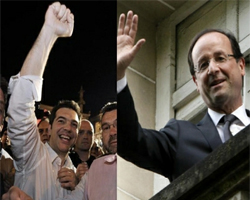 Ειδικότερα, σε ερώτηση αν θεωρεί τον νέο πρόεδρο της Γαλλίας, «σύμμαχο στον αγώνα κατά της επιβολής λιτότητας», σημείωσε ότι ο επικεφαλής των Σοσιαλιστών αποτελεί «φορέα ελπίδας». Σχετικά με το με ποιες δυνάμεις θα μπορούσε να συνεργαστεί μετά τις εκλογές προκειμένου να υλοποιήσει την πολιτική του, ο Αλέξης Τσίπρας παραδέχεται ότι επιθυμεί έναν συνασπισμό της Αριστεράς.