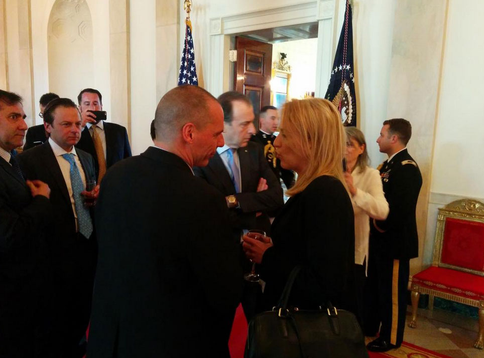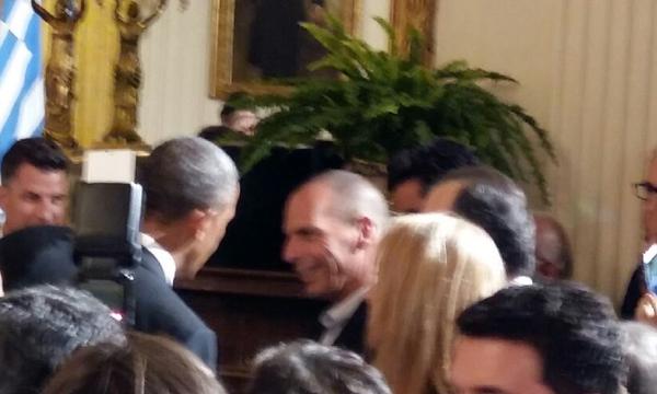 Ολιγόλεπτη συνομιλία με τον Αμερικανό πρόεδρο Μπαράκ Ομπάμα είχε ο υπουργός Οικονομικών Γιάνης Βαρουφάκης στο περιθώριο της εκδήλωσης που πραγματοποιήθηκε στον Λευκό Οίκο για την ανεξαρτησία της Ελλάδας.