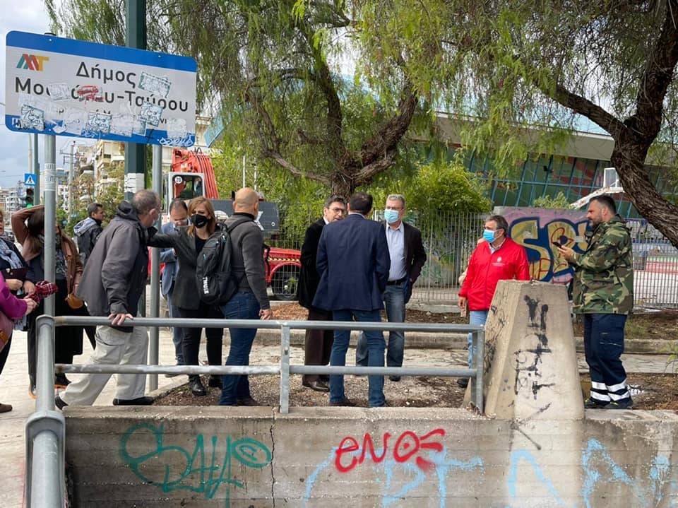 Στο σημείο συναντήθηκαν και συζήτησαν με τον δήμαρχο Μοσχάτου – Ταύρου, Ανδρέα Ευθυμίου, τον επικεφαλής της δημοτικής παράταξης «Προοδευτική Ενότητα Καλλιθέας», Θοδωρή Ψαλιδόπουλο και τους δημοτικούς συμβούλους Καλλιθέας, Θοδωρή Παπαθανασόπουλο και Ελένη Αυγερινού.