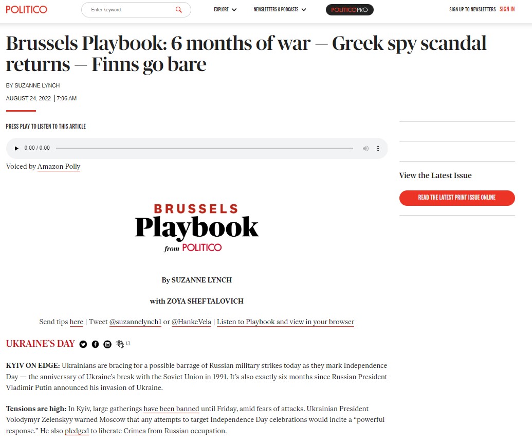Το άρθρο του Politico στο οποίο αναφέρεται η ανακοίνωση του ΣΥΡΙΖΑ: