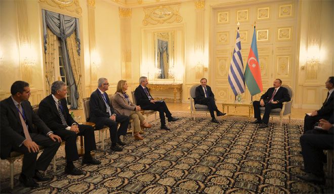 Το ενδεχόμενο επιπλέον παροχής αζέρικου φυσικού αερίου στην Ελλάδα, σε περίπτωση διακοπής της τροφοδοσίας, λόγω της κρίσης στην Ουκρανία, συζήτησαν ο πρωθυπουργός Αντώνης Σαμαράς και ο Πρόεδρος του Αζερμπαϊτζάν Ιλχάμ Αλίγιεφ, στην κατ’ ιδίαν συνάντηση που είχαν στο Προεδρικό Μέγαρο στο Μπακού.