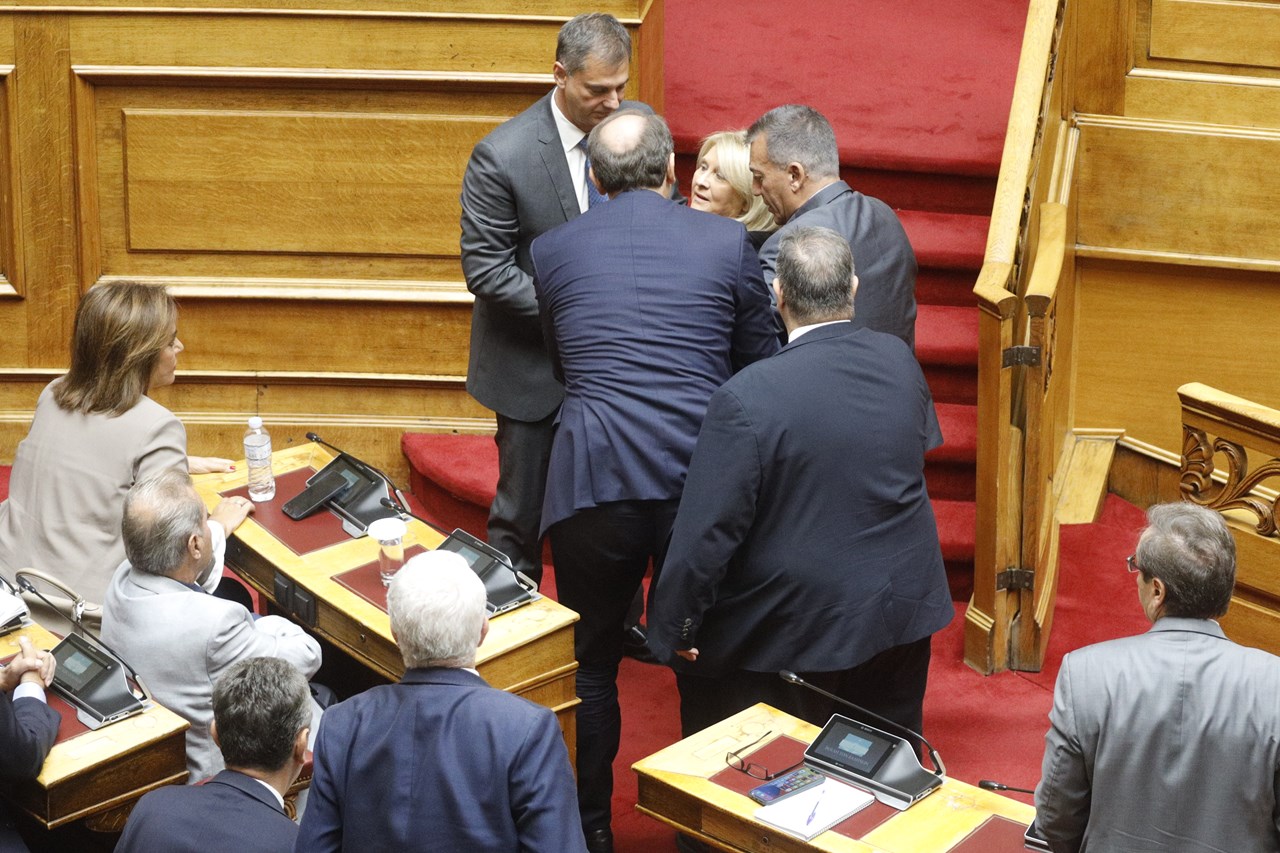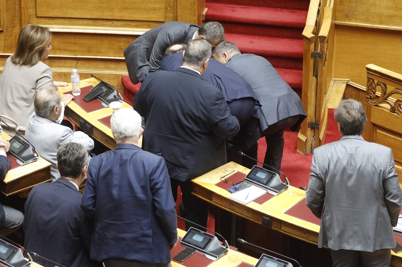 Αμέσως σηκώθηκαν από τις θέσεις τους και έσπευσαν κοντά της για να τη βοηθήσουν να σηκωθεί, ο υφυπουργός Οικονομικών, Απόστολος Βεσυρόπουλος, ο πρώην υπουργός Γιάννης Βρούτσης, καθώς και άλλοι βουλευτές.
