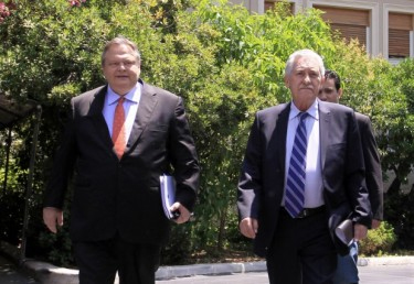 Στις 10.28, ο πρόεδρος του ΠΑΣΟΚ, Ευάγγελος Βενιζέλος, και ο πρόεδρος της Δημοκρατικής Αριστεράς, Φώτης Κουβέλης, πέρασαν το κατώφλι του Μεγάρου Μαξίμου.