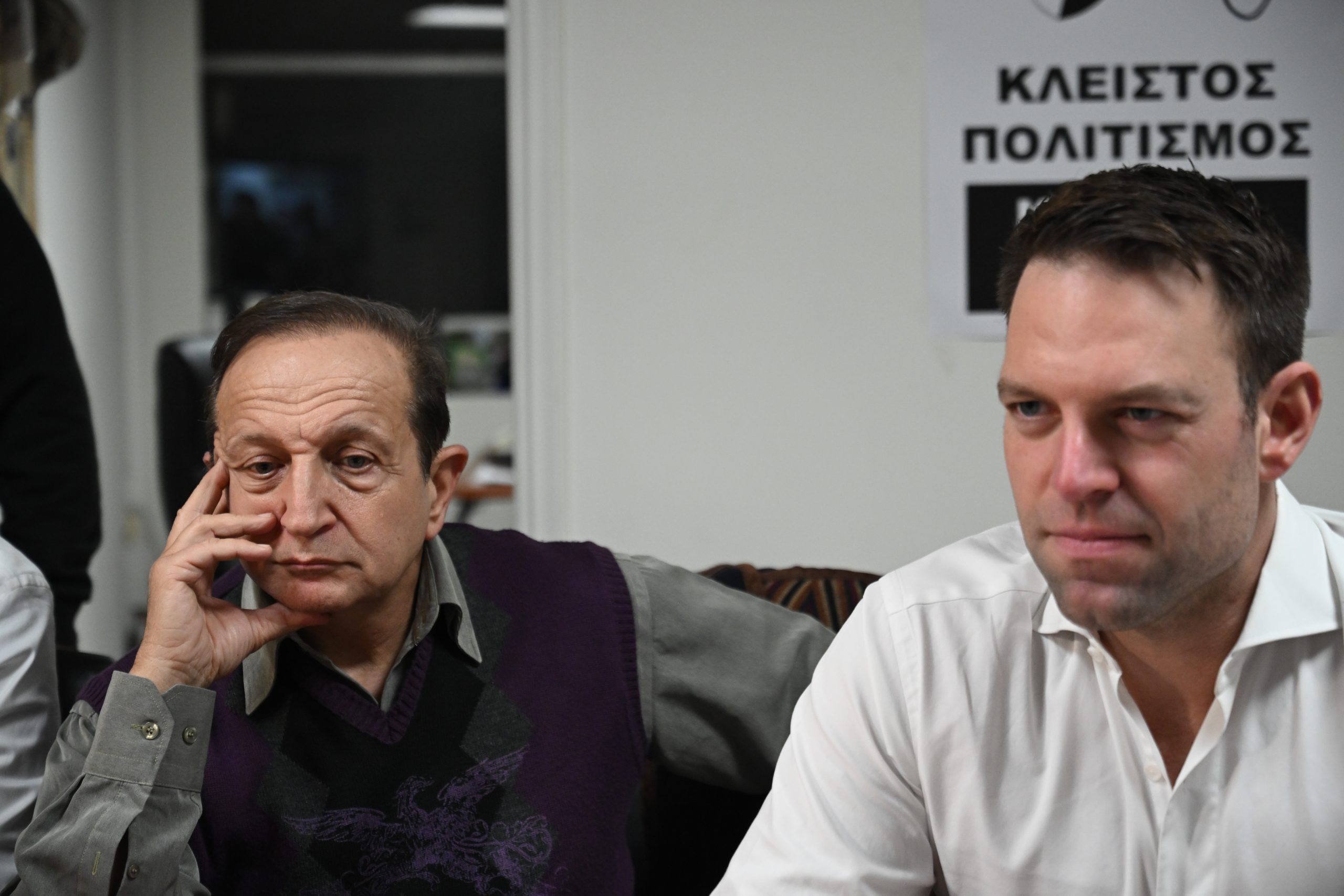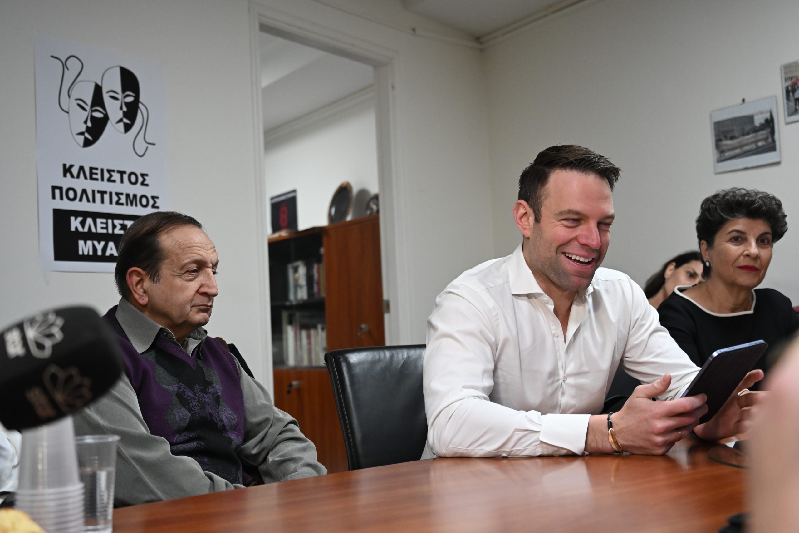 Τον Στέφανο Κασσελάκη συνόδεψαν και στα γραφεία της ΠΟΘΑ η τομεάρχης Πολιτισμού της ΚΟ, Κυριακή Μάλαμα, και η επικεφαλής του Τμήματος Πολιτισμού του ΣΥΡΙΖΑ-ΠΣ, Τζένη Αρσένη.