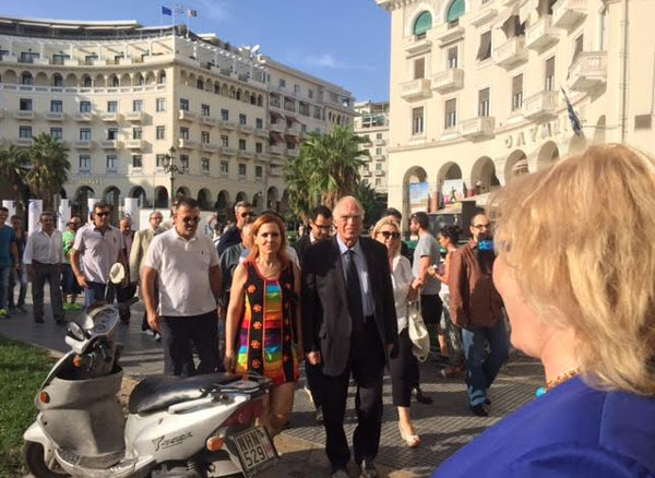 Ο ίδιος χαμογελαστός ζητούσε τη στήριξη των θαμώνων των καφετεριών της πλατείας Αριστοτέλους, ενώ έκανε στάση σε μια από αυτές.