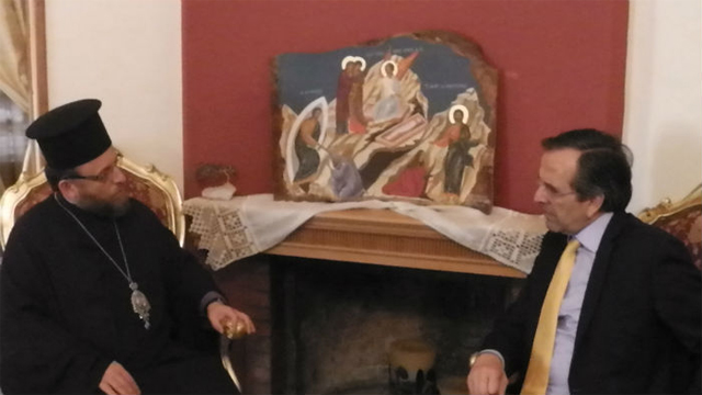 Οι πρώτες εικόνες είναι από την παρουσία του στις Καλυθιές. Στη συνέχεια, προσκύνησε στην Ιερά Μονή Παναγιά Τσαμπίκα, ενώ λίγο αργότερα επισκέφθηκε τη Μαλώνα, χωριό που παραδοσιακά στηρίζει τη Νέα Δημοκρατία.