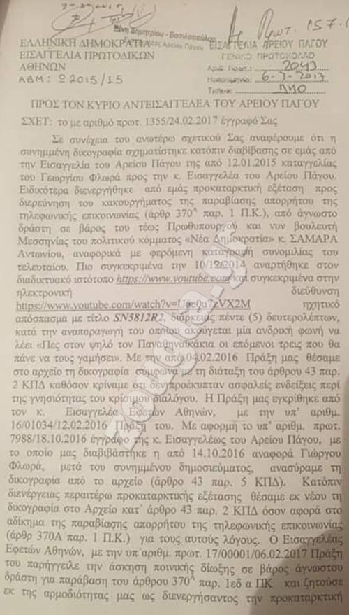 Το zougla.gr αποκαλύπτει το παραπεμπτικό του Εισαγγελέα Πρωτοδικών Αθηνών προς τον κύριο Αντεισαγγελέα του Αρείου Πάγου:
