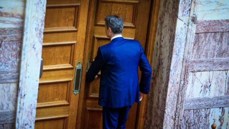 Ο κ. Μητσοτάκης βγαίνει από την αίθουσα
