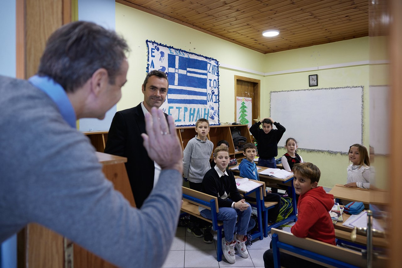 Στη Χειμάρρα έφθασε ο πρωθυπουργός Κυριάκος Μητσοτάκης και αυτή την ώρα επισκέπτεται το ελληνικό σχολείο Όμηρος.