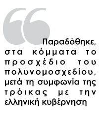Παραδόθηκε, το απόγευμα της Πέμπτης, στα πολιτικά κόμματα το προσχέδιο του πολυνομοσχεδίου, μετά τη συμφωνία της τρόικας με την ελληνική κυβέρνηση, που θα οδηγήσει στην εκταμίευση της επόμενης δόσης.