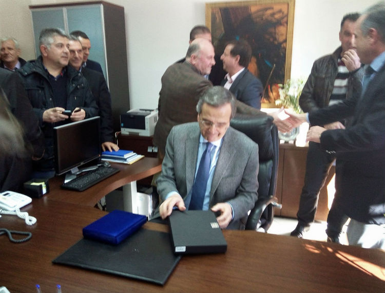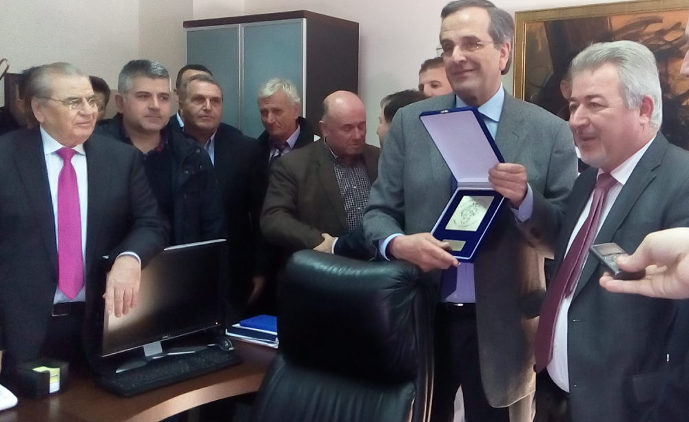 Ο πρόεδρος της Νέας Δημοκρατίας βρέθηκε στο δημαρχείο της πόλης, όπου συνομίλησε με τον Δήμαρχο, Γιάννη Λώλο, ο οποίος του απένειμε τιμητική πλακέτα.
