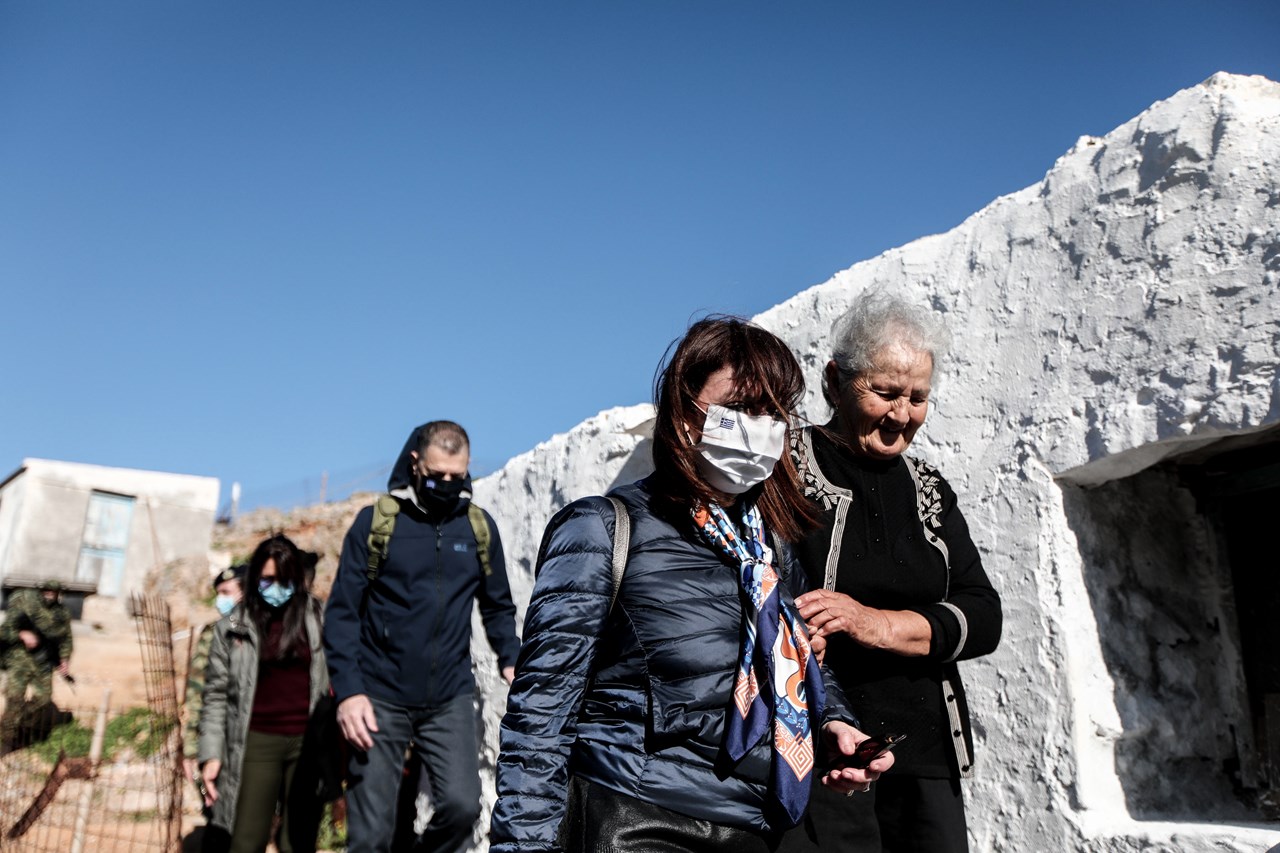 Παράλληλα, επισήμανε πως «κάπως έτσι καλούμαστε να είμαστε όλοι εμείς, με τις ιδιαίτερες συνθήκες που ζούμε», ενώ επικαλούμενη τα λόγια της κυρά Ρήνης προσέθεσε: «Πριν λίγο μας είπε “εγώ είμαι σε καραντίνα τόσα χρόνια”. Βέβαια η δική της καραντίνα είναι μαγική. Χαίρομαι πάρα πολύ που είμαστε σήμερα εδώ και της κρατήσαμε λίγο συντροφιά. Και ακριβώς αυτό το μήνυμα θα θέλαμε να δώσουμε σε όλους. Καλά Χριστούγεννα, από μια άκρη της Ελλάδας, στο Αιγαίο. Να είμαστε καλά όλοι κι εσείς κυρίως κυρά Ρήνη να είστε καλά, να φυλάτε το νησί μας».