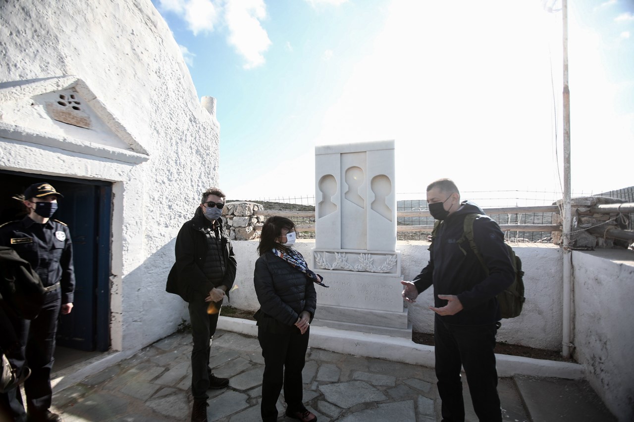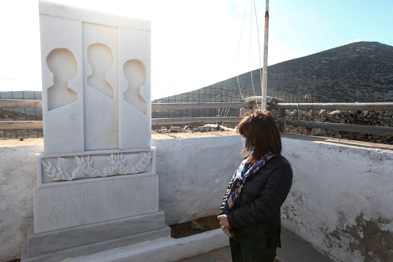 Λίγο πριν αναχωρήσει από την Κίναρο, η Πρόεδρος της Δημοκρατίας επισκέφθηκε το Μνημείο των Πεσόντων Αξιωματικών του Πολεμικού Ναυτικού.