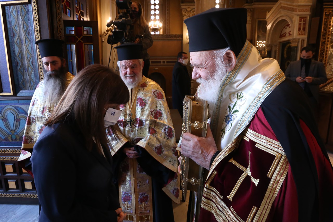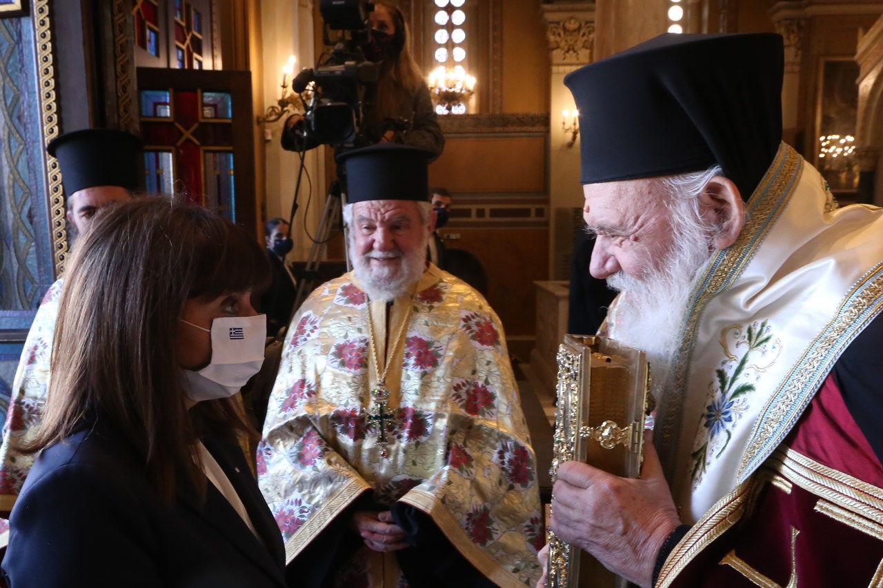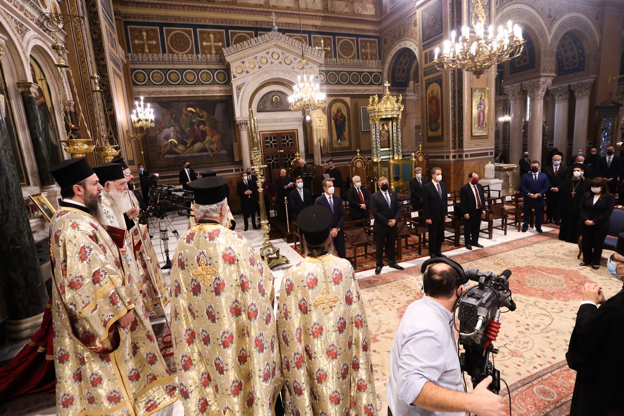 Την πρωτοχρονιάτικη δοξολογία στη Μητρόπολη των Αθηνών παρακολούθησαν το πρωί της Παρασκευής 1 Ιανουαρίου 2021, η Πρόεδρος της Δημοκρατίας, Κατερίνα Σακελλαροπούλου και ο πρωθυπουργός, Κυριάκος Μητσοτάκης.