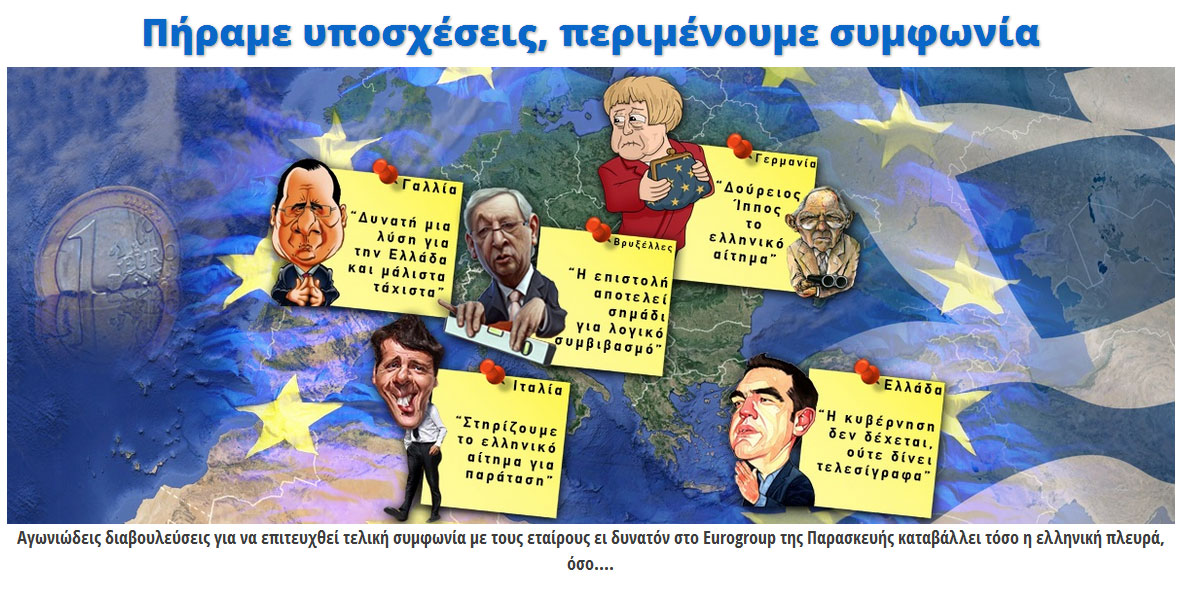 Τις θέσεις τους στην «αρένα» του Eurogroup θα λάβουν σύντομα οι εκπρόσωποι της Ελλάδας και οι Ευρωπαίοι εταίροι, σ’ έναν αγώνα υπό «άνισους όρους» όπως εκτιμούν κυβερνητικοί κύκλοι, με στόχο την επίτευξη μιας συμβιβαστικής, κοινώς αποδεκτής λύσης.