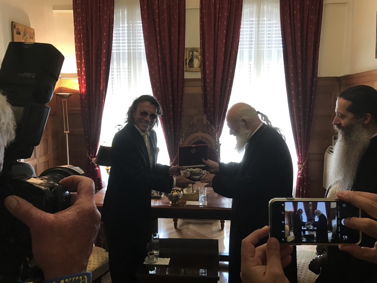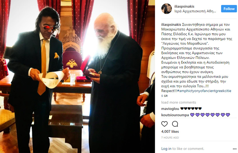 Η συνάντηση έγινε σε ιδιαιτέρως θερμό κλίμα, με τον Ηλία Ψινάκη να παρασημοφορεί τον Αρχιεπίσκοπο με το παράσημο της «Λεγεώνας του Μαραθώνα», με το οποίο έχουν τιμηθεί μεγάλες προσωπικότητες, όπως ο Πρόεδρος της Δημοκρατίας Προκόπης Παυλόπουλος, ο πρόεδρος της Κομισιόν Ζαν – Κλοντ Γιουνκέρ, ο Πατριάρχης Βαρθολομαίος και ο υπουργός Εξωτερικών της Ρωσίας Σεργκέι Λαβρόφ, με τον Αρχιεπίσκοπο Ιερώνυμο να ανταποδίδει στον Ηλία Ψινάκη, δίνοντάς του, έναν περίτεχνο δίσκο για τον καφέ του. Μάλιστα ο κ. Ψινάκης ανήρτησε σχετική φωτογραφία στα μέσα κοινωνικής δικτύωσης.