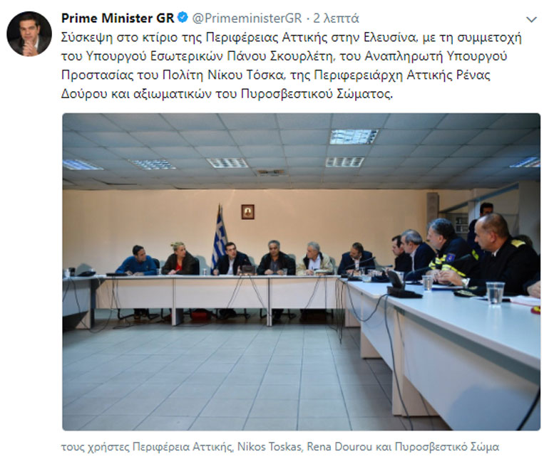 Ο Αλέξης Τσίπρας από το κτήριο της Περιφέρειας Αττικής στην Ελευσίνα έγραψε στο Twitter: