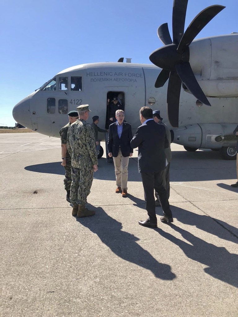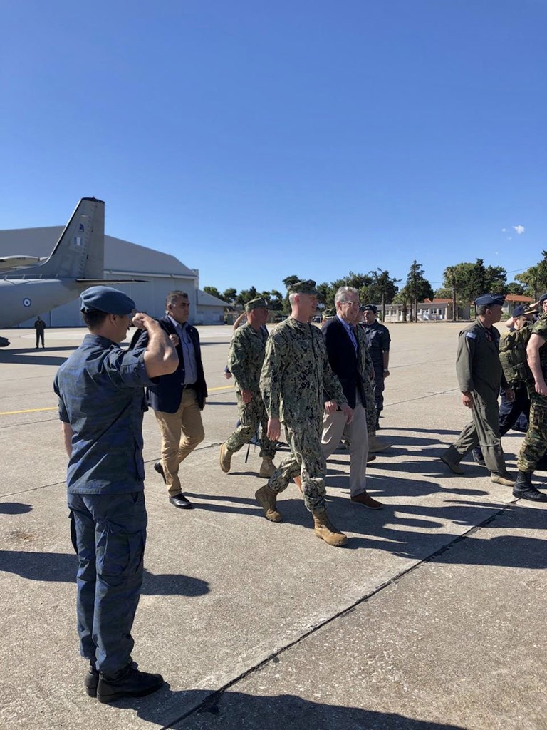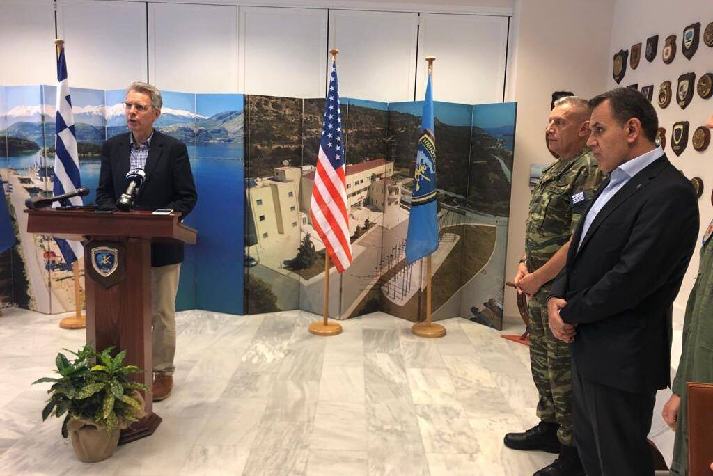 Ο υπουργός Εθνικής Άμυνας Νίκος Παναγιωτόπουλος και ο Αμερικανός πρέσβης στην Αθήνα Τζέφρι Πάιατ επισκέφθηκαν τις στρατιωτικές εγκαταστάσεις στη βάση της Σούδας, συνοδευόμενοι από τον αρχηγό ΓΕΕΘΑ στρατηγό Κωνσταντίνο Φλώρο.