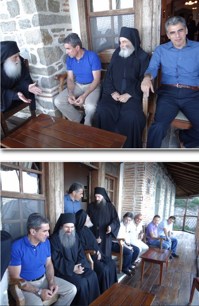 Συναντήθηκε με τον Καθηγούμενο της Μονής Αρχιμανδρίτη π. Ελισαίο και Σιμωνοπετρίτες πατέρες και συζήτησε μαζί τους σε κλίμα εγκαρδιότητας.